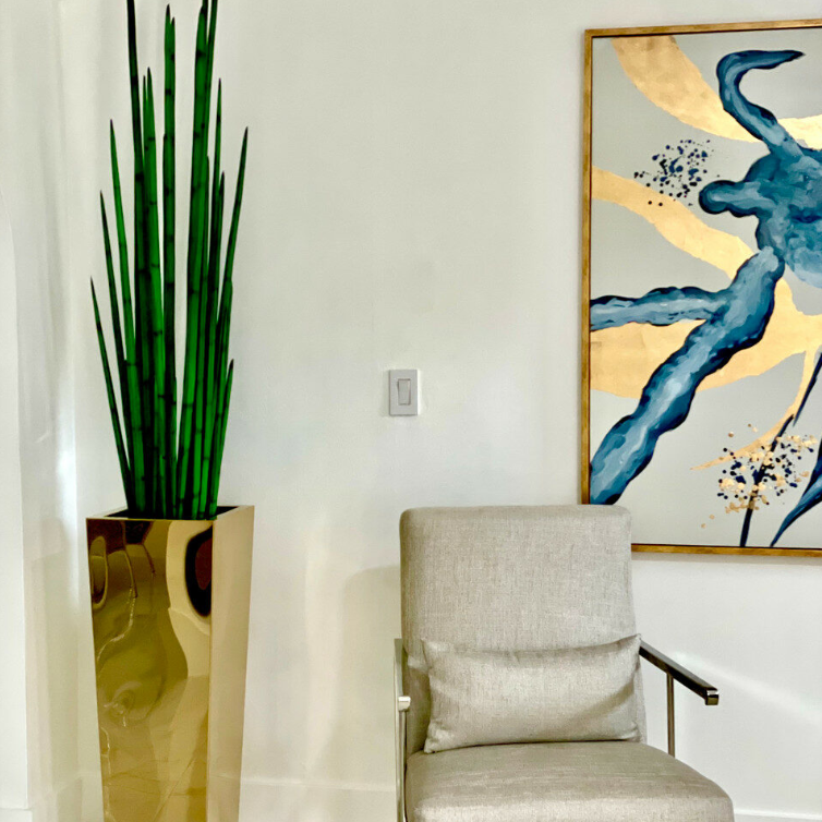 The ultimate statement of luxury, our Pure Gold collection features a high-gloss stainless steel cone vase in gold, paired with an artificial snake grass plant. Each piece is meticulously crafted and polished to achieve a luxurious mirrored finish. No need to water your plants! They are durable, will last for years, and remain beautiful all year round. Created with the utmost attention to detail and made with high-quality materials, our plants are luxurious and realistic.